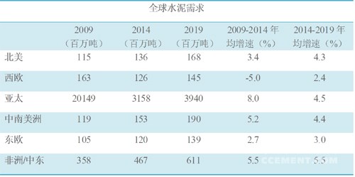 到2019年,全球水泥需求預計年均增長4.5%至52億噸。