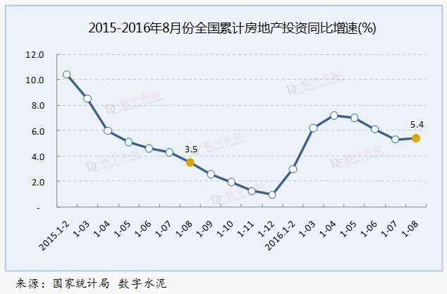 2016年1-8月份,全國房地產開發投資6.44萬億元,同比名義增長5.4%,增速比1-7月份提高0.1個百分點,較去年同期增長1.9個百分點。其中,住宅投資4.31萬億元,同比增長4.8%,增速比1-7月份提高0.3個百分點。住宅投資占房地產開發投資的比重為66.9%。(信息來源:數字水泥網)