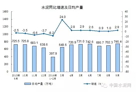 根據國家統(tǒng)計局公布的最新數據,2016年9月份,規(guī)模以上工業(yè)增加值同比實際增長6.1%(下同,增加值增速均為扣除價格因素的實際增長率),較8月份回落0.2個百分點。從環(huán)比看,9月份,規(guī)模以上工業(yè)增加值比上月增長0.47%。1-9月份,規(guī)模以上工業(yè)增加值同比增長6.0%。9月份水泥產量22393萬噸,增長2.9%。